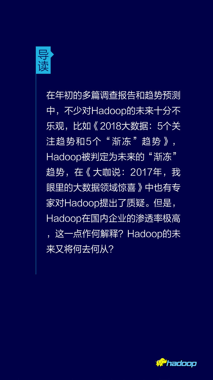 Gartner发布的《2017年数据管理技术成熟度曲线》将Hadoop掀上舆论巅峰,报告显示Hadoop即将在到达生产成熟期之前进入淘汰席。Gartner预测,到2018年,70%的Hadoop部署无法实现节约成本和收入增长的目标。年初,Hadoop被列为2018大数据领域“渐冻”趋势...